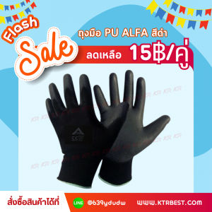 ถุงมือเคลือบ PU สีดำ (Alfa)