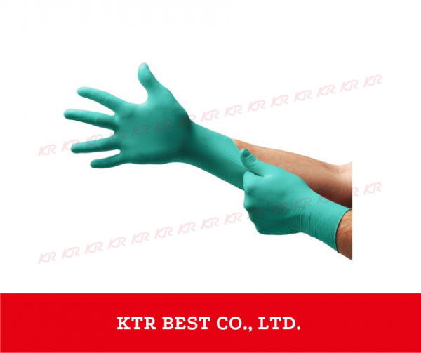 - ถุงมือยางไนไตรสีเขียว ไม่มีแป้ง