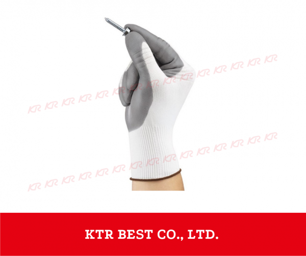 - ถุงมือผ้าทำจากไนล่อน เคลือบด้วยโฟมไนไตร